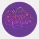 Purple Rainbow Modern Elegant Happy New Year Script, Classic Round Sticker Great for celebrating & Party’s.