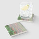 The coasters are gorgeous, a quality feel and heavy weight. They look like a precious archeological find. A rustic stone juxtaposed with a modern floral black and white print. I like the way the print goes slightly imperfect on the cut stone edges giving them a kind-of natural beauty.
