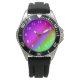 A beautiful design that is bright and full of a rainbow of colours. Twelve white numbers / digits
