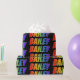 This vibrant, exciting, multicolored wrapping paper design features the common first name "BAILEY" having a colourful rainbow spectrum like colouring pattern. The background is coloured black. Colourful wrapping paper like this might be fun to use when giving a present or gift to somebody named Bailey. [~Z0000354]