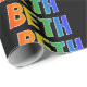 This vibrant, multicolored, exciting wrapping paper design features the common first name "BETH" having a colourful rainbow spectrum inspired colouring pattern. The background is coloured black. Colourful wrapping paper like this might be fun to use when giving a gift or present to somebody named Beth. [~Z0000354]
