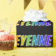 This exciting, multicolored, vibrant wrapping paper design features the common first name "CHEYENNE" having a colourful rainbow spectrum like colouring pattern. It also features a black coloured background. Vibrant wrapping paper like this might be a fun way to wrap a present or gift being given to somebody named Cheyenne. [~Z0000354]