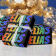 This exciting, fun, multicolored wrapping paper design features the common first name "ELIAS" having a colourful rainbow spectrum gradient like colouring pattern. The background is coloured black. Colourful wrapping paper like this might be a fun way to wrap a gift being given to somebody named Elias. [~Z0000354]