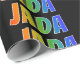 This fun, exciting, multicolored wrapping paper design features the common first name "JADA" having a colourful rainbow spectrum like colouring pattern. It also features a black coloured background. Exciting wrapping paper like this might be a fun way to wrap a gift or present being given to somebody named Jada. [~Z0000354]