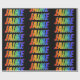 This exciting, multicolored, vibrant wrapping paper design features the common first name "JAIME" having a colourful rainbow spectrum inspired colouring pattern. The background is coloured black. Exciting wrapping paper like this might be a fun way to wrap a gift being given to somebody named Jaime. [~Z0000354]