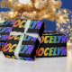 This multicolored, fun, vibrant wrapping paper design features the common first name "JOCELYN" having a colourful rainbow spectrum like colouring pattern. The background is coloured black. Exciting wrapping paper like this might be a fun way to wrap a present or gift being given to somebody named Jocelyn. [~Z0000354]