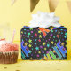 This fun, vibrant, multicolored design features the common first name "KYLIE" having a colourful rainbow spectrum like colouring pattern. It also features a colourful star shapes pattern. Vibrant wrapping paper like this might be a fun way to wrap a present being given to somebody named Kylie. [~Z0000353]