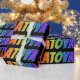 This multicolored, vibrant, fun wrapping paper design features the common first name "LATOYA" having a colourful rainbow spectrum gradient like colouring pattern. The background is coloured black. Vibrant wrapping paper like this might be fun to use when giving a gift or present to somebody named Latoya. [~Z0000354]