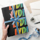 This multicolored, exciting, fun wrapping paper design features the common first name "LYDIA" having a colourful rainbow spectrum gradient like colouring pattern. It also features a black coloured background. Vibrant wrapping paper like this might be a fun way to wrap a present or gift being given to somebody named Lydia. [~Z0000354]