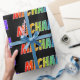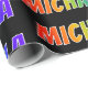 This fun, vibrant, exciting wrapping paper design features the common first name "MICHAELA" having a colourful rainbow spectrum gradient inspired colouring pattern. The background is coloured black. Exciting wrapping paper like this might be a fun way to wrap a gift being given to somebody named Michaela. [~Z0000354]