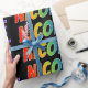 This exciting, multicolored, vibrant wrapping paper design features the common first name "NICOLE" having a colourful rainbow spectrum gradient like colouring pattern. The background is coloured black. Vibrant wrapping paper like this might be a fun way to wrap a present being given to somebody named Nicole. [~Z0000354]