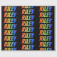 This exciting, multicolored, fun wrapping paper design features the common first name "RILEY" having a colourful rainbow spectrum inspired colouring pattern. The background is coloured black. Colourful wrapping paper like this might be a fun way to wrap a present being given to somebody named Riley. [~Z0000354]