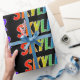 This fun, vibrant, multicolored wrapping paper design features the common first name "SKYLAR" having a colourful rainbow spectrum gradient like colouring pattern. The background is coloured black. Exciting wrapping paper like this might be fun to use when giving a present or gift to somebody named Skylar. [~Z0000354]