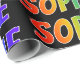 This vibrant, fun, exciting wrapping paper design features the common first name "SOPHIE" having a colourful rainbow spectrum gradient like colouring pattern. The background is coloured black. Exciting wrapping paper like this might be a fun way to wrap a present being given to somebody named Sophie. [~Z0000354]