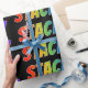 This vibrant, exciting, fun wrapping paper design features the common first name "STACEY" having a colourful rainbow spectrum like colouring pattern. The background is coloured black. Colourful wrapping paper like this might be fun to use when giving a gift to somebody named Stacey. [~Z0000354]