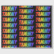 This multicolored, vibrant, exciting wrapping paper design features the common first name "TAMMY" having a colourful rainbow spectrum like colouring pattern. It also features a black coloured background. Vibrant wrapping paper like this might be a fun way to wrap a present being given to somebody named Tammy. [~Z0000354]