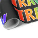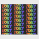 This vibrant, multicolored, exciting wrapping paper design features the common first name "TRACY" having a colourful rainbow spectrum inspired colouring pattern. The background is coloured black. Colourful wrapping paper like this might be fun to use when giving a gift or present to somebody named Tracy. [~Z0000354]