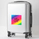 The stick looks amazing. Unfortunately, it would not stick on our suitcase as it was textured. When we found a non-textured (smooth) suitcase, the sticker stuck and looks great. The printing looked awesome.