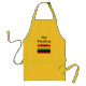 Cute, heavy duty apron with wide front pocket. Light to wear and easy slip on and off. Shorter length perfect for my 5 ft frame. I love it! Wording and print looks good with clear borders. Stitching is good, nicely finished.