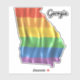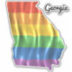 This LGBTQ pride design has an outline shape of the state Georgia with a rippling rainbow stripe flag.