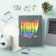 This LGBTQ pride design has an outline shape of the state Ohio with a rippling rainbow stripe flag.