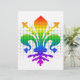 A rainbow fleur-de-lis with a fleur-de-lis background pattern.