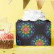 Enjoy bohemian elegance in our Floral Fountain polka dot mandala on a solid black background in colours from our Maximalist Rainbow palette.