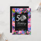 Rainbow Floral Garden Photo 50th Birthday Black Invitation