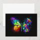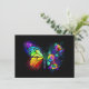 Rainbow, luminous, artistically painted monarch butterfly with bouquet of iridescent, bright, luminescent roses on black background. Rainbow butterfly.