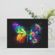 Rainbow, luminous, artistically painted monarch butterfly with bouquet of iridescent, bright, luminescent roses on black background. Rainbow butterfly.