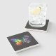 The coasters are gorgeous, a quality feel and heavy weight. They look like a precious archeological find. A rustic stone juxtaposed with a modern floral black and white print. I like the way the print goes slightly imperfect on the cut stone edges giving them a kind-of natural beauty.
