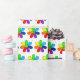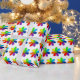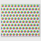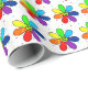 A tiled pattern of rainbow flowers on a colourful dotty background.