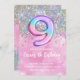 Rainbow Foil Girl Nine Birthday Invitation