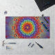 Add a burst of spectrum-spanning color to your office with this vibrant rainbow fractal flower desk mat. This intricate design features concentric layers of "petals" in every shade—from fiery reds and oranges to cool greens, blues, and deep purples. The kaleidoscope-style symmetry creates a focal point that is both energizing and harmoniously balanced.