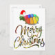 Rainbow Funny Turtle Wearing Santa Hat Xmas Gifts Holiday Postcard