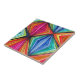 Colourful, bright graphic art illustration with hand designed geometric pattern art in diamond psychedelic bright, vivid rainbow colour scheme. This design was hand drawn and hand coloured by visual artist Sacha Grossel and was inspired by pop art and op art movements of the 1960s.