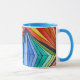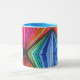 Wow your friends and office mates with this bright mug ! Colourful, bright graphic art illustration with hand designed geometric pattern art in diamond psychedelic bright, vivid rainbow colour scheme. This design was hand drawn and hand coloured by visual artist Sacha Grossel and was inspired by pop art and op art movements of the 1960s.