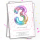 Rainbow Girl 3rd Birthday Party Balloon Number Invitation