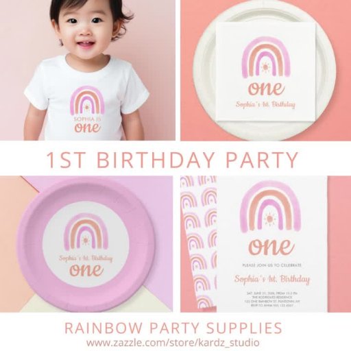 One Rainbow First Birthday Girl Party SuppliesDesigned by Ana Garza