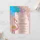 Rainbow Glitter Drips Pink Flamingos Quinceañera I Invitation
