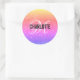 Colourful Rainbow Glitter Girly Round Shaped Sticker with a scripted white monogram and purple name. Personalise with your name and initial.