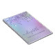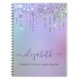 Girly cute notebook with unicorn-coloured rainbow faux glitter dripping down a purple background. Personalise with a name in a pretty purple script with swashes and add a title below or leave blank.