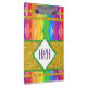 A delightful gold glitter and rainbow argyle diamond combination with customisable monogram area.