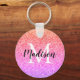 Keep up with your keys using this Rainbow Glitter Script Monogram Personalised keychain. It is modern designed with a faux glitter background. Monogram initial is in large white lettering on the centre and name is in black calligraphy script lettering,