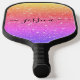 Stylish rainbow glitter black script name women's pickle ball paddle. Personalise with your name..