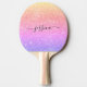 Modern ping pong paddle with a girly, rainbow glitter background and a hand lettered script. Personalise with your name.
