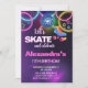 rainbow glow roller skating disco party birthday Invitation. with vivid neon glow lights in blue, pink, and purple, and text in pink, white, and yellow, great for roller skating disco birthday parties for girls and women's birthday parties, great for roller skating, and dancing parties in the retro style.