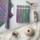 Rainbow stripe brushstrokes make for a colourful background perfect for kids of all ages and those with artistic souls. This version features the colour stripes over a black background, with design repeats every 18" wide.