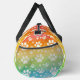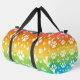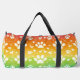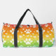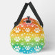 This cheerful Gear bag features a vibrant rainbow gradient fading from red to blue, adorned with adorable white paw prints and tiny hearts. It's a sweet Kit bag and a loving Weekender for heartwarming journeys.