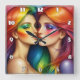 Rainbow Haired Women Embracing Colourful Beauty Square Wall Clock
